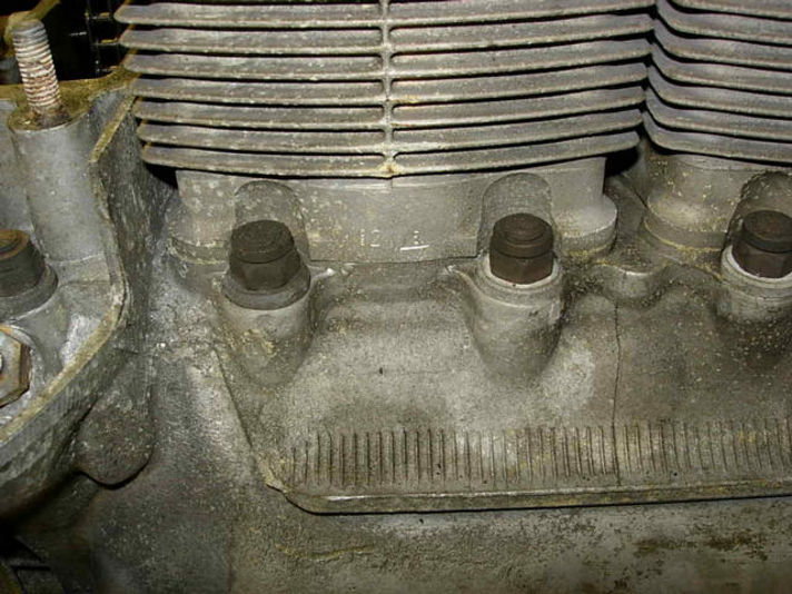 ちょっとここが違う、左写真は930クランクケーススルーボルト部分の写真です、右が964クランクケースです。違いを写真で確認してください。