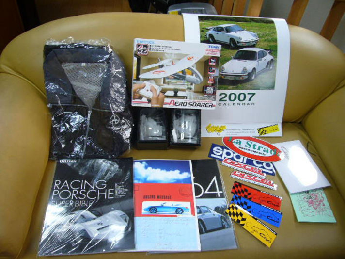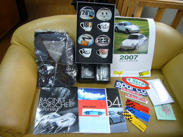 ノリタケウイスキーグラス(ポルシェイラスト入り)ペアー 911DAYSスペシャルブック二冊 本国ポルシェオリジナルノート クレヨンCUPステッカー三種類 他ステッカー 蓮絵はがきなど その他色々応募が