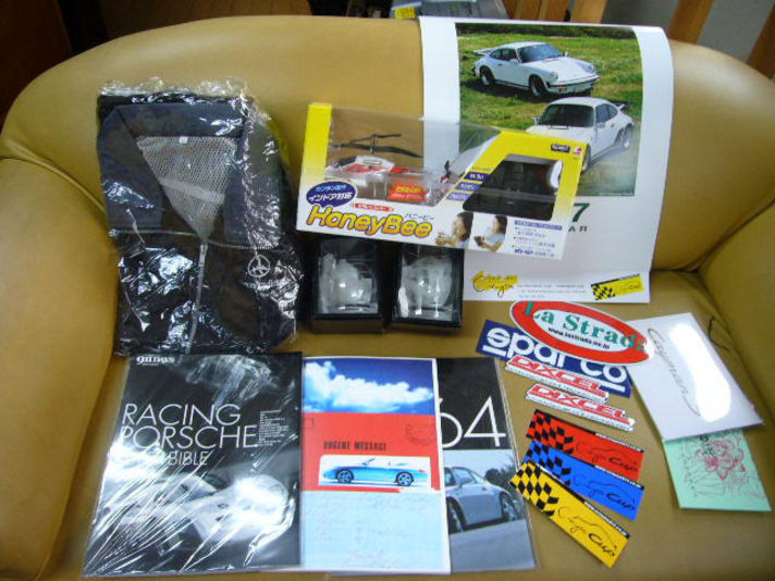 ラジコン飛行機の入った物そしてポルシェテミカップセットの入った物