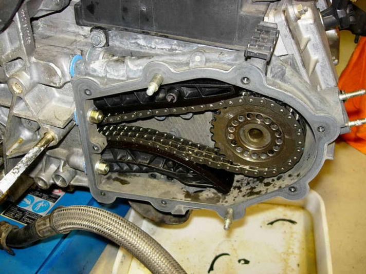 ケースを取り付け、カムシャフトのタイミング調整タペット調整しチェーンケースタペットカバーにふたをします。ガスケット類の部品、また ブローバイホースフランジのガスケットも交換します。