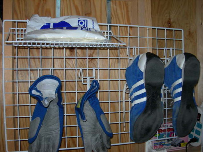 前回に引き続き 今回も100円ショップで購入した物をで こんな感じの物つくりました レーシングシューズ グローブなどを陰干しする物 名づけて シューズグローブ引っ掛けネット(その物の名前ですひねりなし(笑)) 小林製薬のネーミングからの応用) 単純に 壁にネットを止め 色々なアイテムを引っ掛けていくだけ でも これ以外と便利でレースでかいた汗なども 引っ掛ける前にファブリーズしてかければ 2〜3日で臭いも押えて清潔です (年々おやじ臭がしますから 注意 注意) 今回の材料代420円 製作時間15分です |